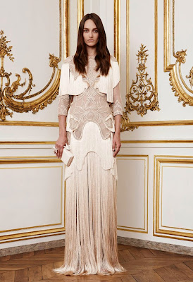 It's fantastic.Incredible craftsmanship and detail. Jackets encrusted with lace and embroidery, stones, layer by layer, creating detail. Some of them are encrusted with porcelain skulls that look is not sinister, but on the contrary, they only supplement the complexity of the structure of the garment. Net embroidery, shiny dresses perfectly fitting to the body, all in white and soft colors. Hands of the maestro Riccardo Tisci.